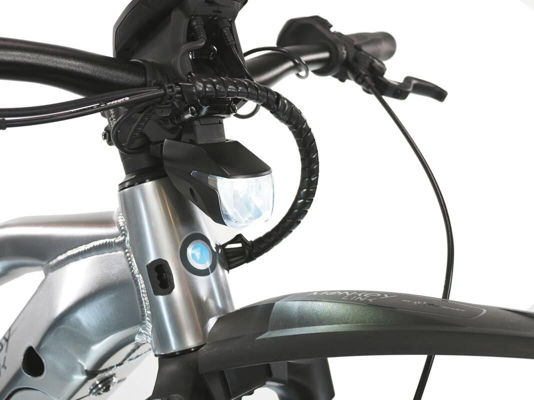 Wie von selbst stellt MonkeyLink die Verbindung zwischen Bike und Anbauteil her – magnetisch, schnell, einfach intuitiv. Beleuchtungskomponenten am E-Bike werden dabei mit Strom aus dem Akku versorgt und können über das Display gesteuert werden. Mit einem Click verwandelt sich z.B. ein sportives E-Mountainbike in ein alltagstaugliches Fahrzeug. Magnetisch mit dem BlueDock verbunden und über die intuitive Arretierung fixiert, sorgen Beleuchtungskomponenten für Sicherheit im Straßenverkehr. Ein unbeabsichtigtes Lösen während der Fahrt ist ausgeschlossen.