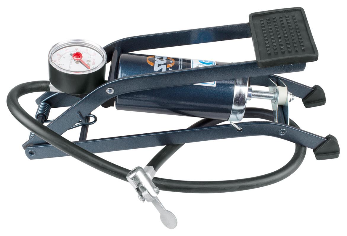 Die robuste SKS Fußpumpe aus Stahl mit Manometer ist universell einsetzbar und pumpt bis zu 5 bar in die Reifen. Der flexible Schlauch mit Autoventil-Anschluss ist mit einem Klemmhebel versehen. Im Lieferumfang der Pumpe sind zusätzliche Adapter für Fahrrad-Ventile und Camping-Anwendungen enthalten.