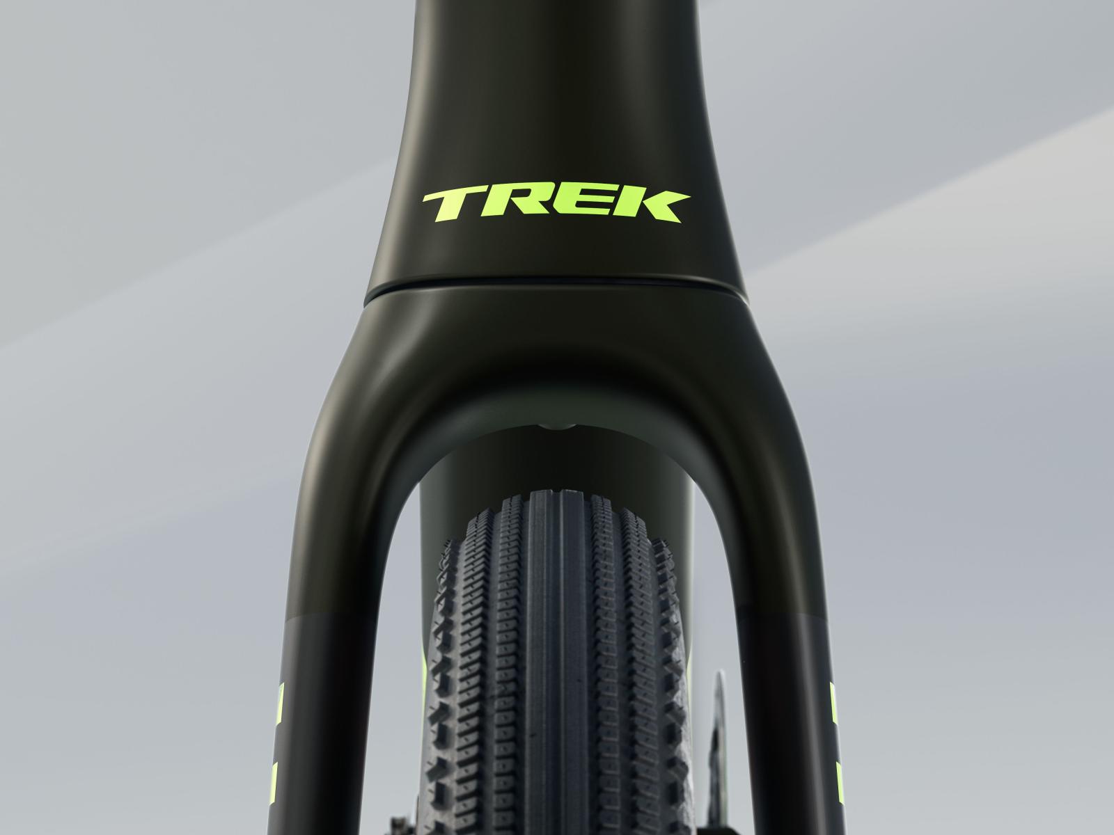 Einen leichten und aerodynamischen Rahmen aus 800 Series OCLV Carbon mit IsoSpeed-Komforttechnologie und vielen Befestigungspunkten für die wichtigsten Utensilien des Renntages. Bontrager Aeolus Pro 3V Carbonlaufräder und eine Trek Aero RSL Lenker-Vorbau-Einheit aus Carbon für ein leichtgewichtiges und agiles Fahrverhalten. Außerdem SRAMs Force XPLR AXS D2 Antrieb mit kabelloser Schaltung für ruppige Straßen.