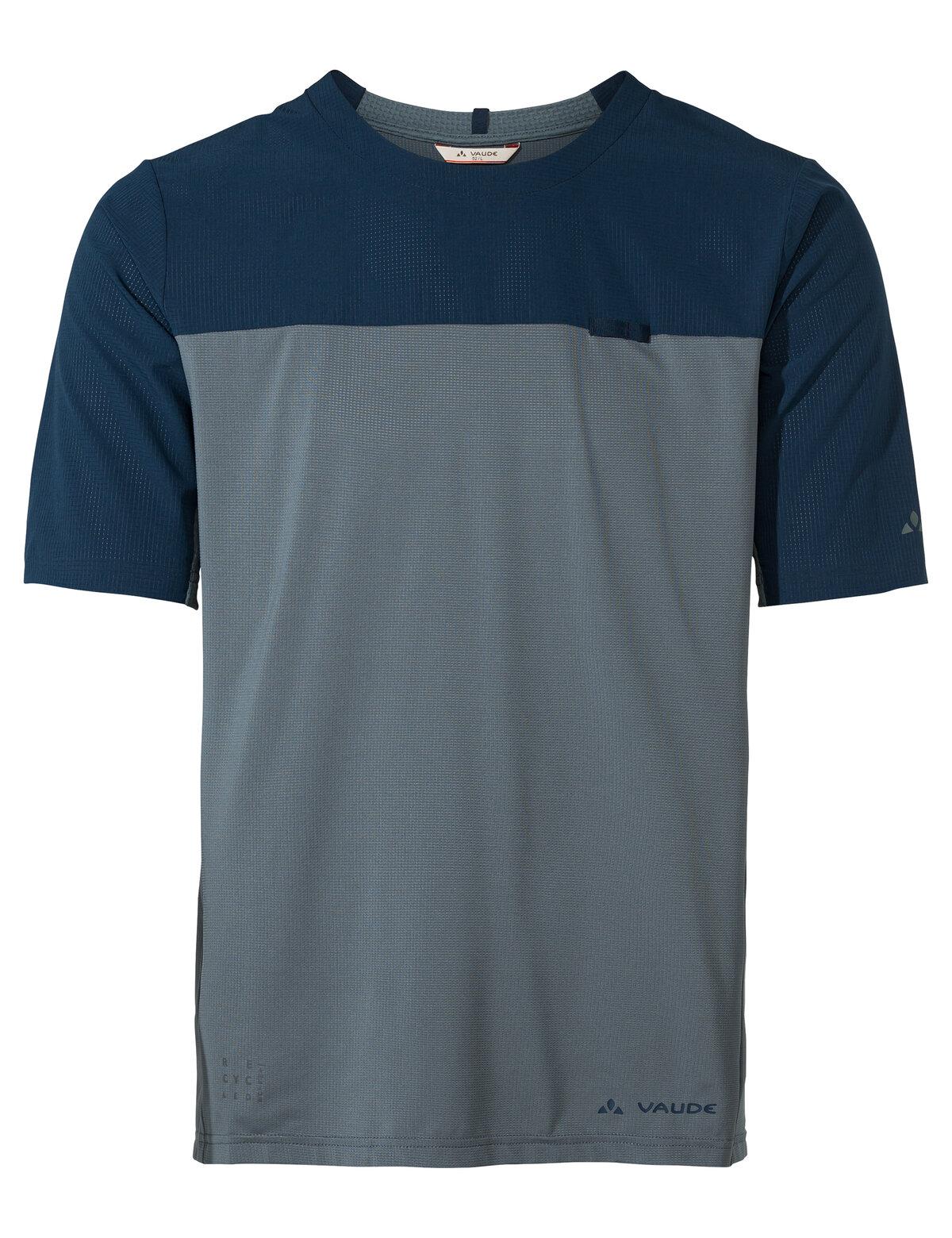 pro Stück inkl. MwSt. zzgl. Versandkosten für StandardartikelDieses T-Shirt für Gravelfahrer ist sowohl stylish als auch multifunktional. Das Kuro II Shirt für Herren kommt im engeren Slim Fit mit Rundhalsausschnitt und lässt sich mit seiner Hybridkonstruktion aus 3 verschiedenen, überwiegend recycelten Materialien äußerst komfortabel tragen: Im Schulterbereich setzen wir sehr leichtes und gleichzeitig robustes Material mit leichter Perforierung ein. Front und Rücken aus elastischem Strickmaterial liegen leicht und angenehm auf der Haut und seitlich unter den Armen sorgt ein elastisches Waben-Mesh für beste Belüftung und uneingeschränkte Bewegungsfreiheit. 2 offene Taschen im Rücken. Schön ins Design des Herren T-Shirts integriert, finden sich dekorative Elemente im Nacken und ein Webband auf der linken Brust zum Einstecken einer Sonnenbrille. Das Kuro II aus überwiegend recycelten Materialien ist ein leichtes, atmungsaktives und schnelltrocknendes Multifunktions-Shirt für den legeren Graveler. Das VAUDE Green Shape-Label steht für ein umweltfreundliches, funktionelles Produkt aus nachhaltigen und bluesign® zertifizierten Materialien. Als Mitglied mit Leader Status bei der unabhängigen Organisation Fair Wear engagiert sich VAUDE für faire Arbeitsbedingungen und faire Löhne.