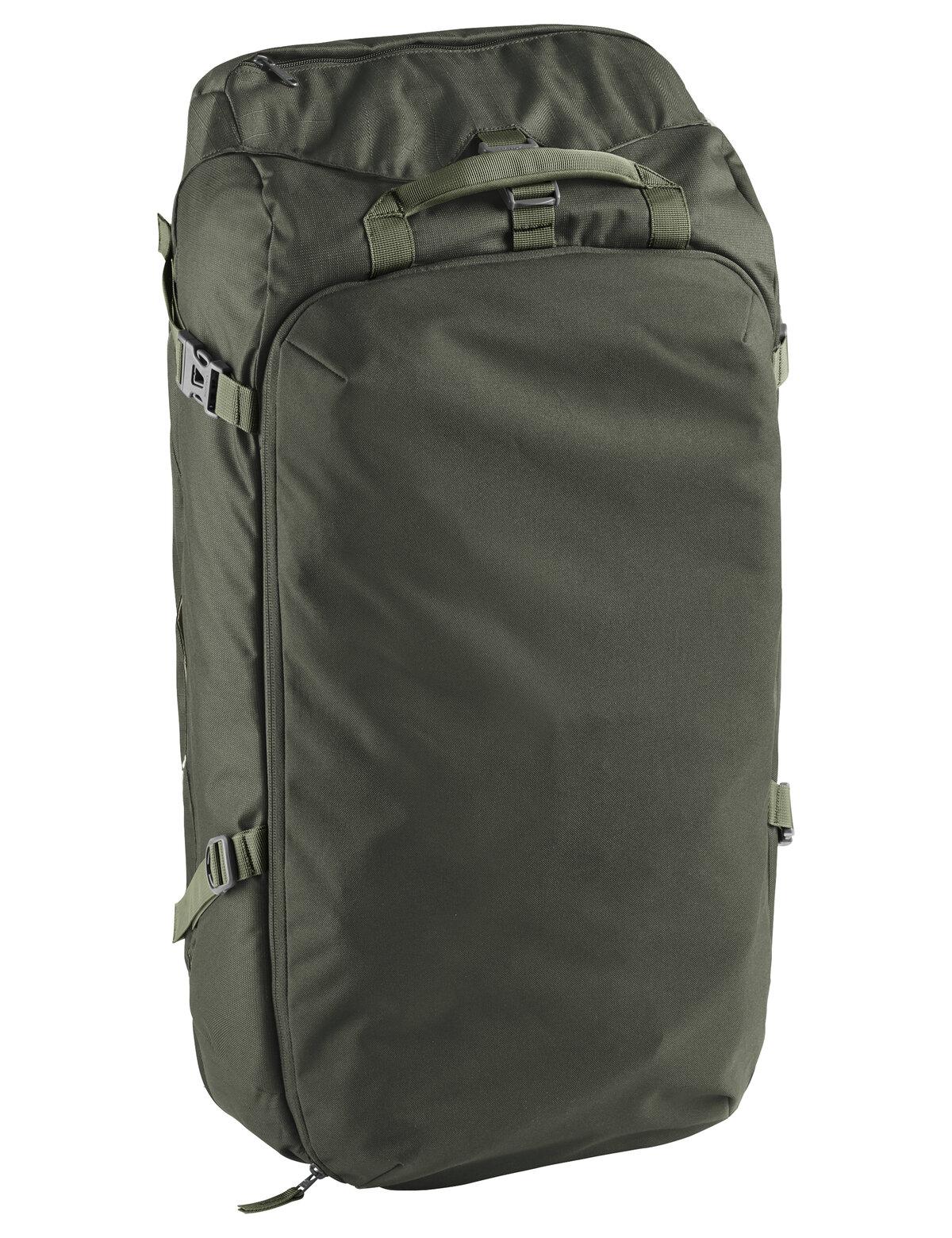 Für Weltenbummler: Der geräumige Reiserucksack Mundo 50+ verfügt über ein komfortables Tragesystem, das in Windeseile unter einer schützenden Abdeckung verschwindet, wenn es gerade nicht gebraucht wird - ideal also für Flugreisen und öffentliche Verkehrsmittel. Praktisch für unterwegs: Im Lieferumfang ist ein sehr leichter Daypack ("To Go") enthalten. Dadurch können die wichtigsten Sachen mit ins Handgepäck oder auf kurze Exkursionen genommen werden. Um möglichst schnell auf den Inhalt des mittelgroßen Reiserucksacks zugreifen zu können, lässt sich das Hauptfach per verdecktem Reißverschluss nach vorne öffnen. Im praktischen Office-Organizer lassen sich Laptop und Zubehör sicher verstauen. Der Rucksack wurde dabei so konstruiert, dass Diebe nicht sofort Zugriff auf den RV haben - ein echtes Plus an Flughäfen oder anderen gefährdeten Orten. Zwei zusätzliche Griffe erleichtern das Anheben und Verstauen des Rucksacks. Das VAUDE Green Shape-Label steht für ein umweltfreundliches, funktionelles Produkt aus nachhaltigen Materialien.
